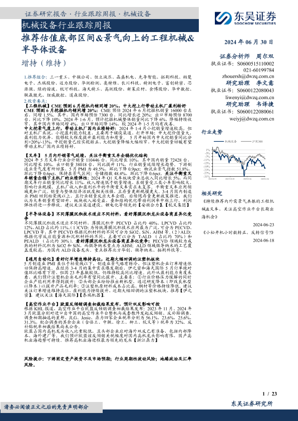 【东吴证券】【20240630】20240630-东吴证券-机械设备行业跟踪周报:推荐估值底部区间&景气向上的工程机械&半导体设备-23页