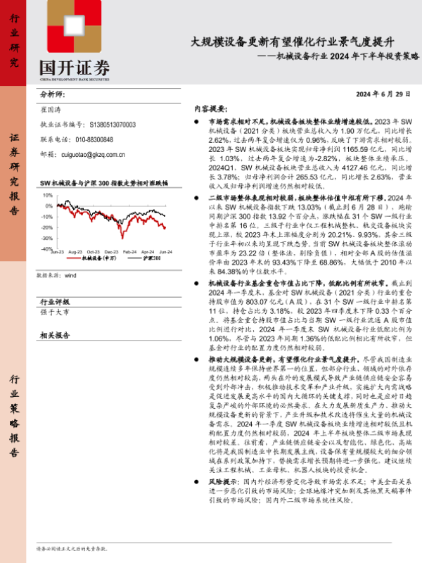 【国开证券】【20240629】机械设备行业2024年下半年投资策略:大规模设备更新有望催化行业景气度提升-19页