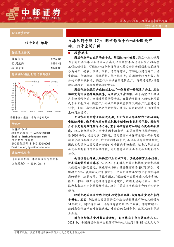 【中邮证券】【20240701】出海系列专题(2):高空作业平台-掘金欧美市场,出海空间广阔-18页