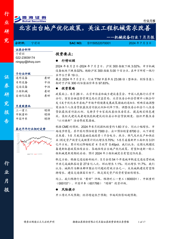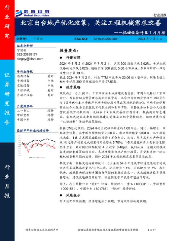 【渤海证券】【20240703】20240703-渤海证券-机械设备行业7月月报:北京出台地产优化政策,关注工程机械需求改善-17页