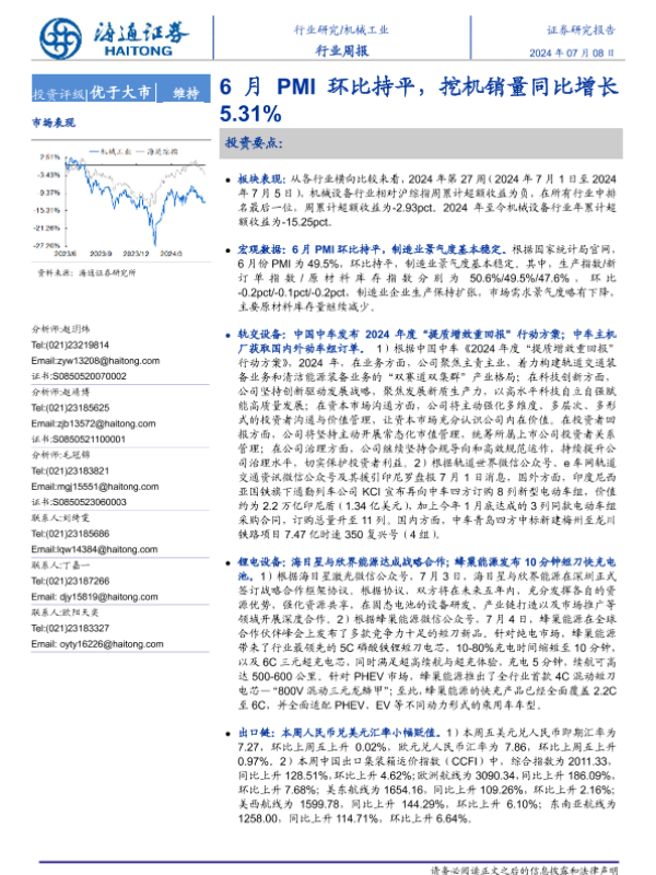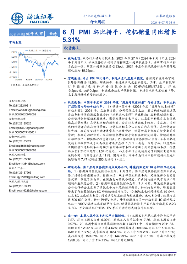【海通证券】【20240708】20240708-海通证券-机械工业行业周报:6月PMI环比持平,挖机销量同比增长5.31%-11页