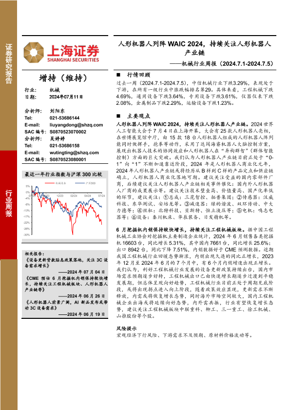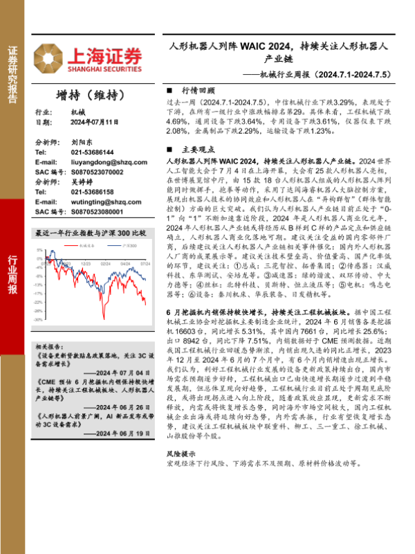 【上海证券】【20240711】20240711-上海证券-机械设备行业周报:人形机器人列阵WAIC 2024,持续关注人形机器人产业链-16页