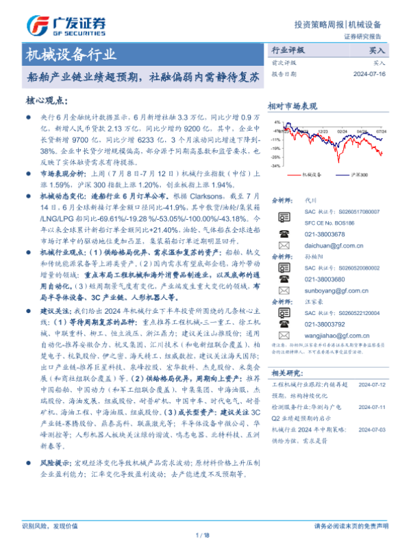 【广发证券】【20240716】20240716-广发证券-机械设备行业:船舶产业链业绩超预期,社融偏弱内需静待复苏-18页