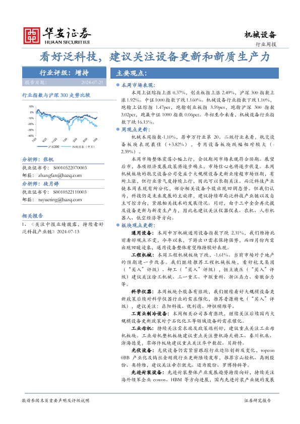 【华安证券】【20240721】20240721-华安证券-机械设备行业周报:看好泛科技,建议关注设备更新和新质生产力-14页
