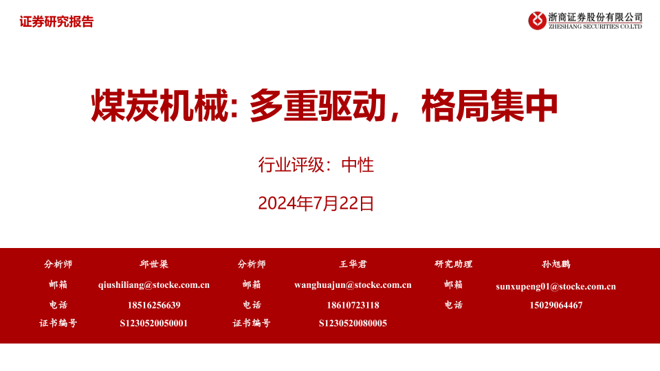 【浙商证券】【20240722】煤炭机械:多重驱动,格局集中-51页