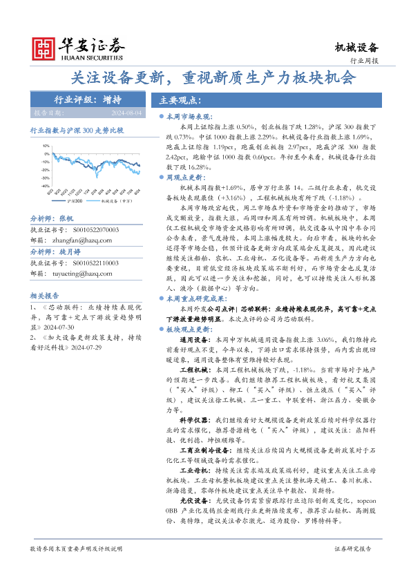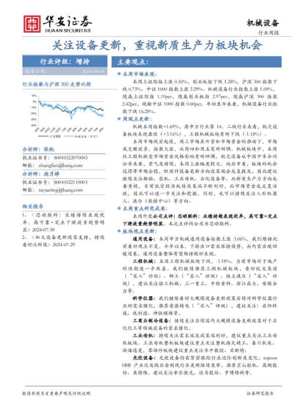 【华安证券】【20240804】20240804-华安证券-机械设备行业周报:关注设备更新,重视新质生产力板块机会-15页