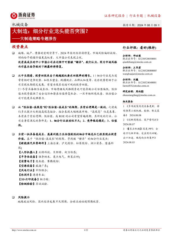 【浙商证券】【20240809】大制造:细分行业龙头能否突围?-22页