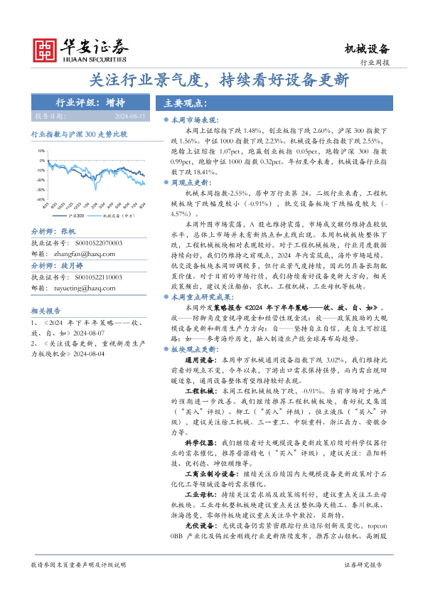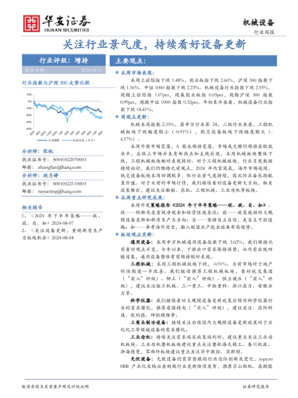 【华安证券】【20240811】20240811-华安证券-机械设备行业周报:关注行业景气度,持续看好设备更新-14页