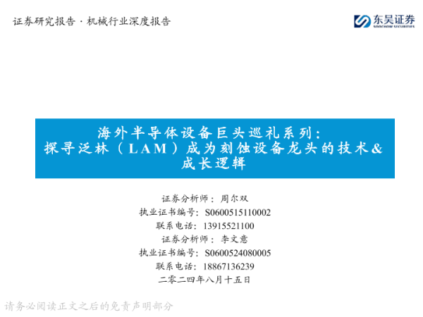 【东吴证券】【20240815】海外半导体设备巨头巡礼系列:探寻泛林(LAM)成为刻蚀设备龙头的技术&成长逻辑-38页