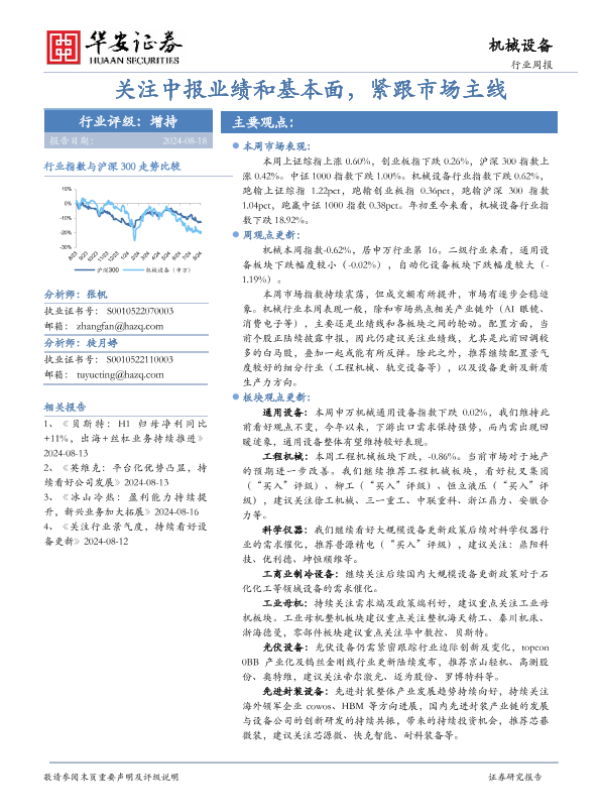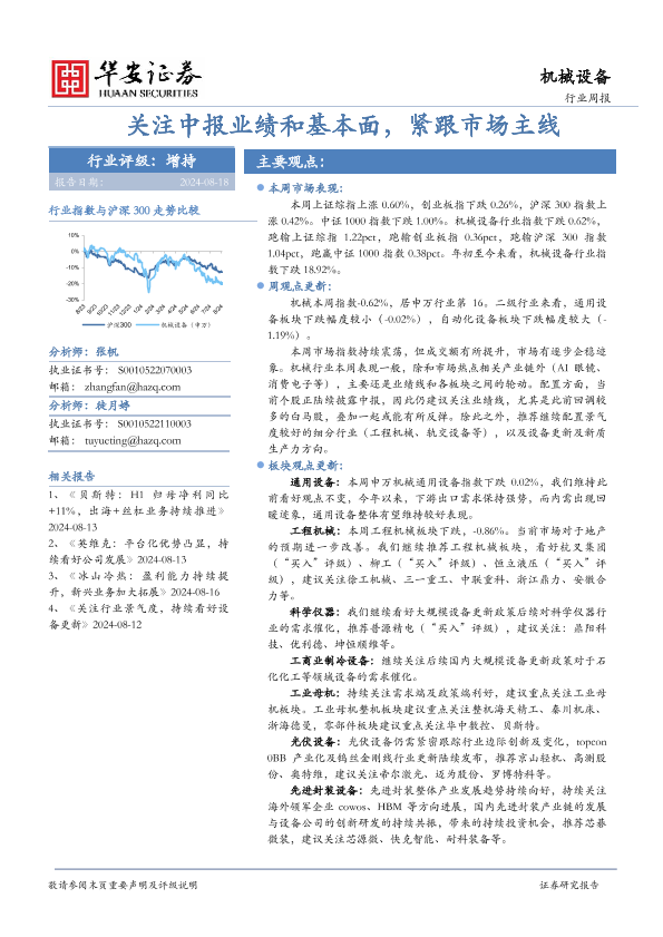 【华安证券】【20240818】20240818-华安证券-机械设备行业周报:关注中报业绩和基本面,紧跟市场主线-14页