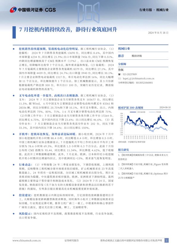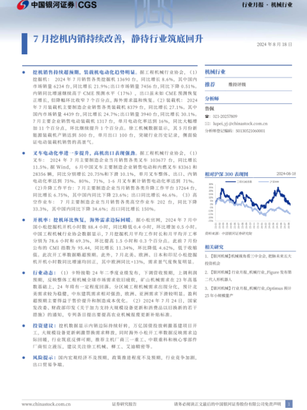【银河证券】【20240818】20240818-中国银河-机械行业行业月报:7月挖机内销持续改善,静待行业筑底回升-22页