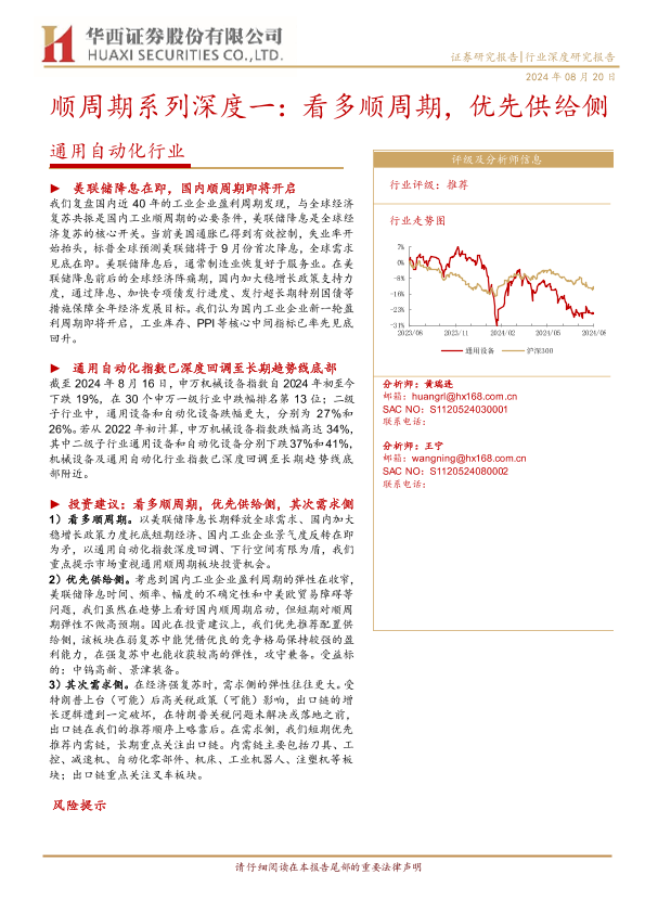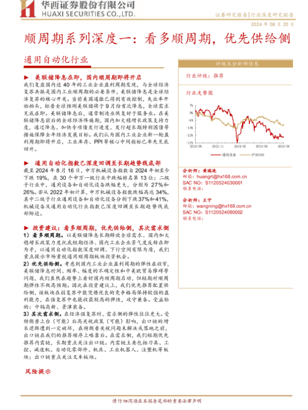 【华西证券】【20240820】通用自动化行业:顺周期系列深度一:看多顺周期,优先供给侧-20页
