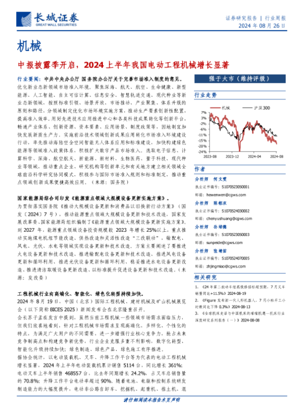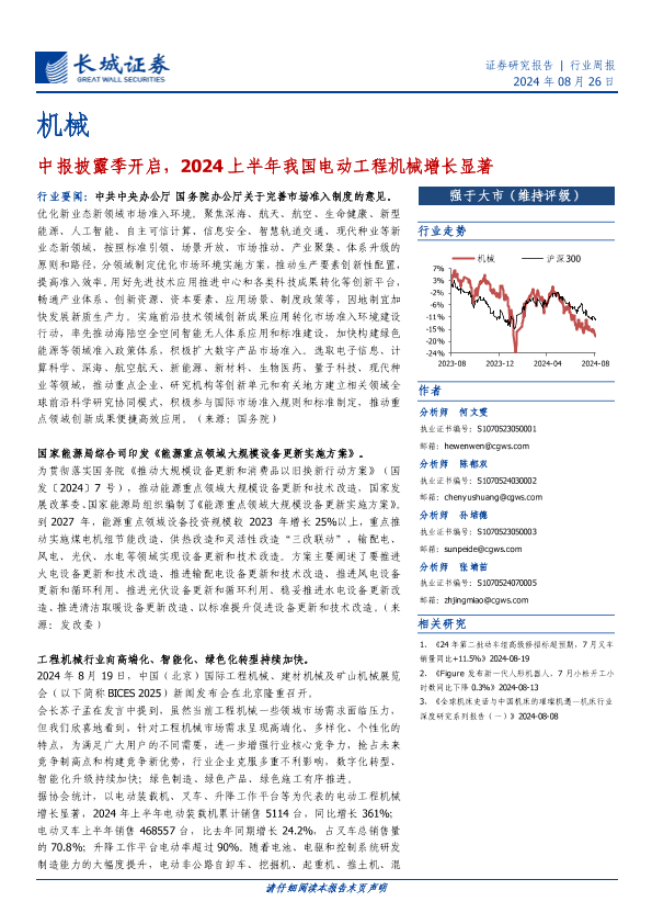 【长城证券】【20240826】20240826-长城证券-机械行业周报:中报披露季开启,2024上半年我国电动工程机械增长显著-17页