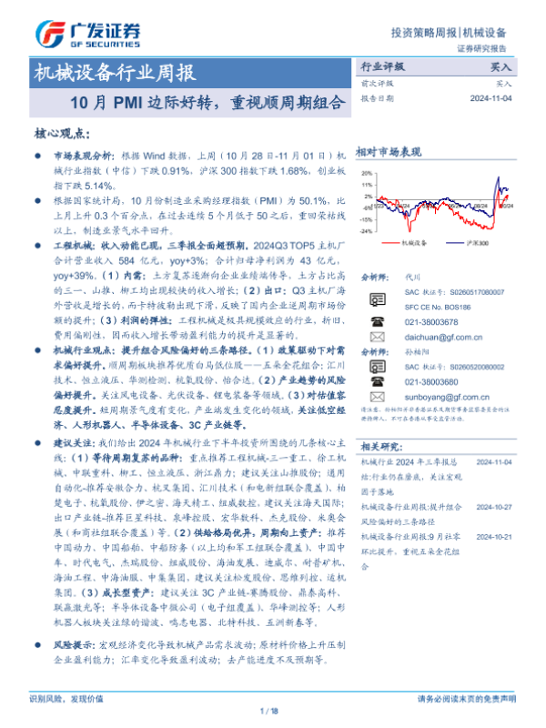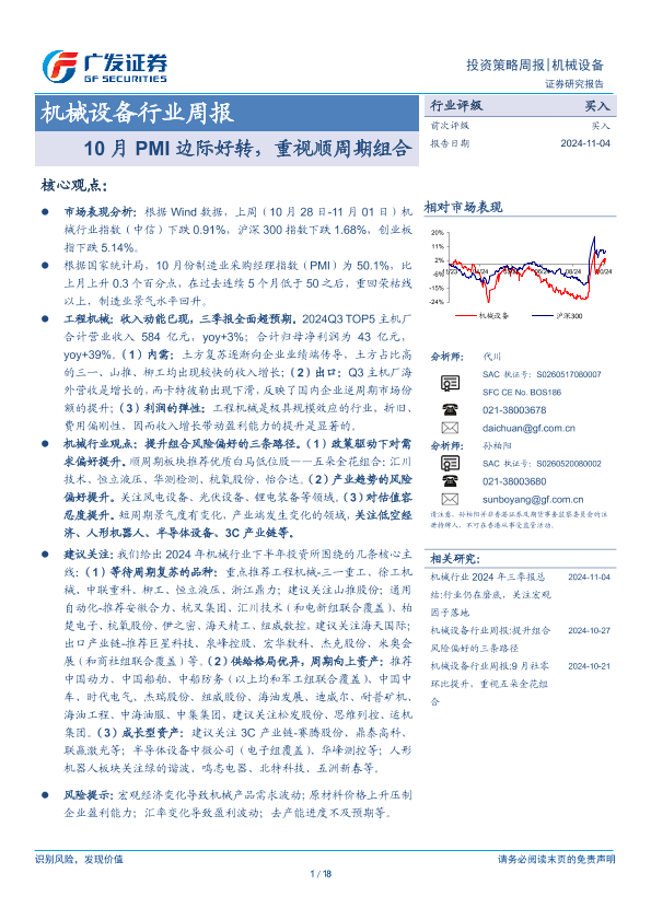 【广发证券】【20241104】20241104-广发证券-机械设备行业周报:10月PMI边际好转,重视顺周期组合-18页