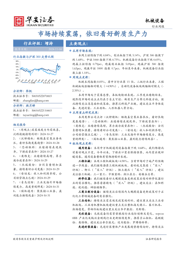 【华安证券】【20241104】20241104-华安证券-机械设备行业周报:市场持续震荡,依旧看好新质生产力-17页