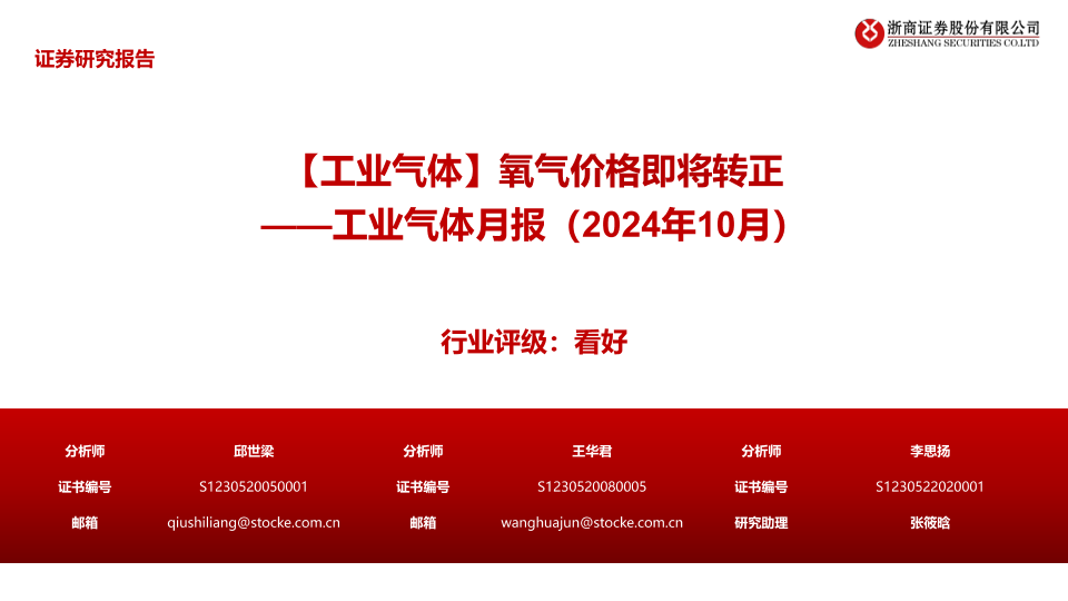 【浙商证券】【20241105】【工业气体】氧气价格即将转正-22页