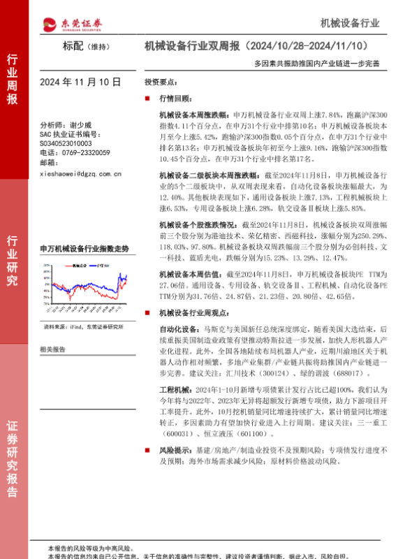【东莞证券】【20241110】20241110-东莞证券-机械设备行业双周报:多因素共振助推国内产业链进一步完善-11页