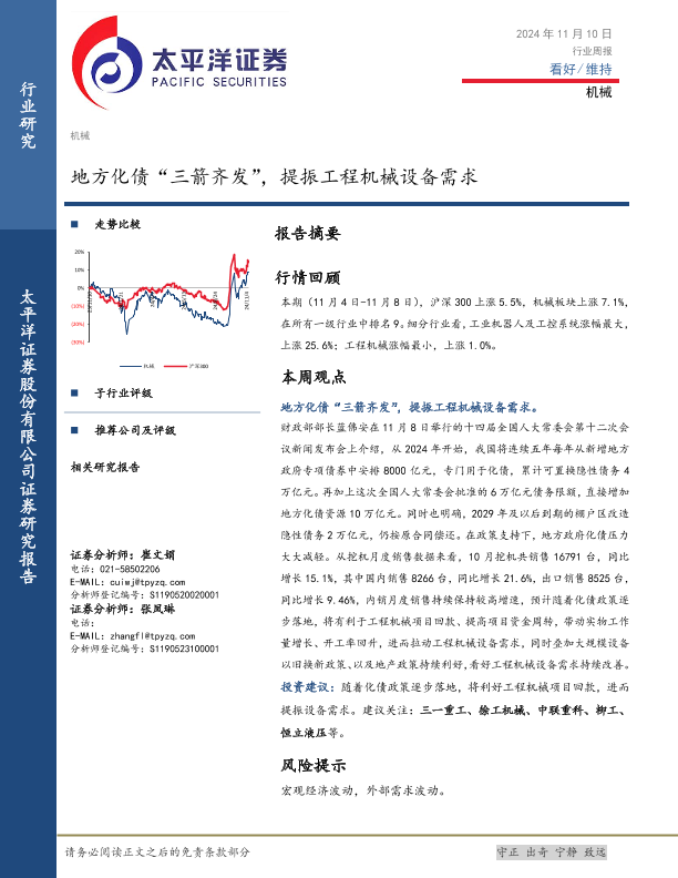 【太平洋证券】【20241110】20241110-太平洋-机械行业周报:地方化债“三箭齐发”,提振工程机械设备需求-16页
