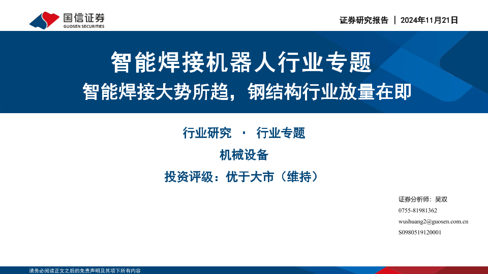 【国信证券】【20241121】智能焊接大势所趋,钢结构行业放量在即-44页