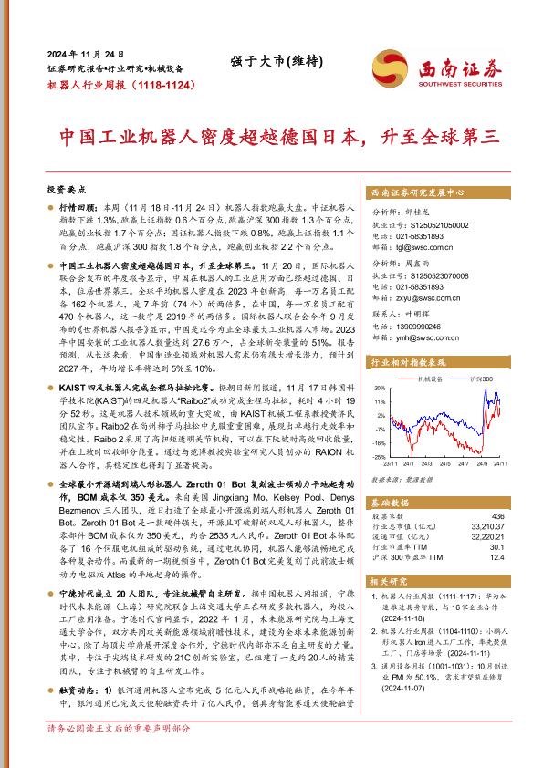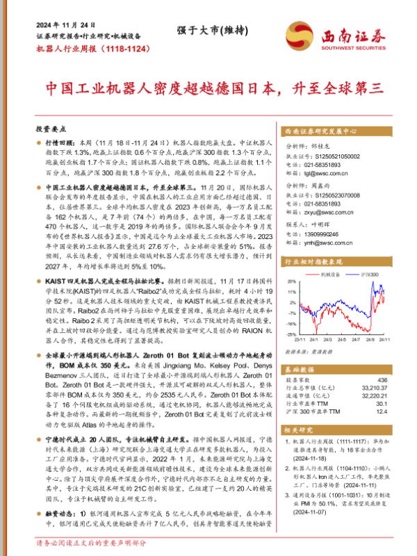【西南证券】【20241124】机器人行业周报:中国工业机器人密度超越德国日本,升至全球第三-13页