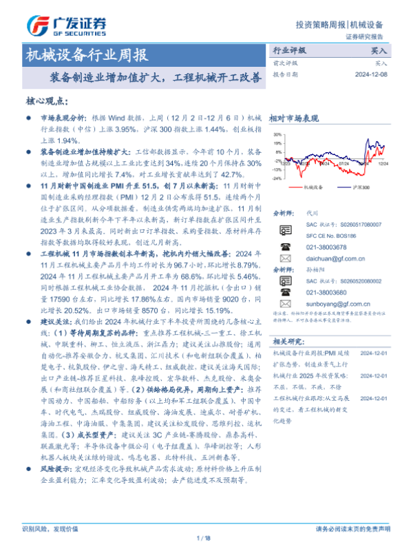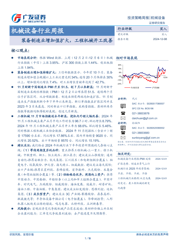 【广发证券】【20241208】20241208-广发证券-机械设备行业周报:装备制造业增加值扩大,工程机械开工改善-18页