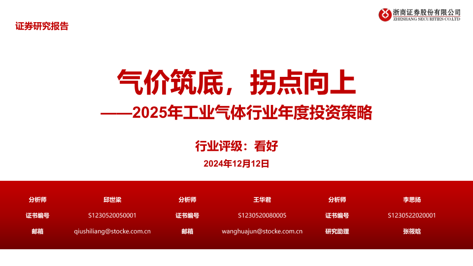 【浙商证券】【20241212】2025年工业气体行业年度投资策略:气价筑底,拐点向上-33页