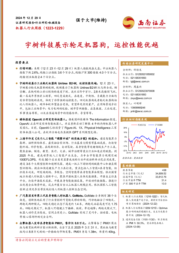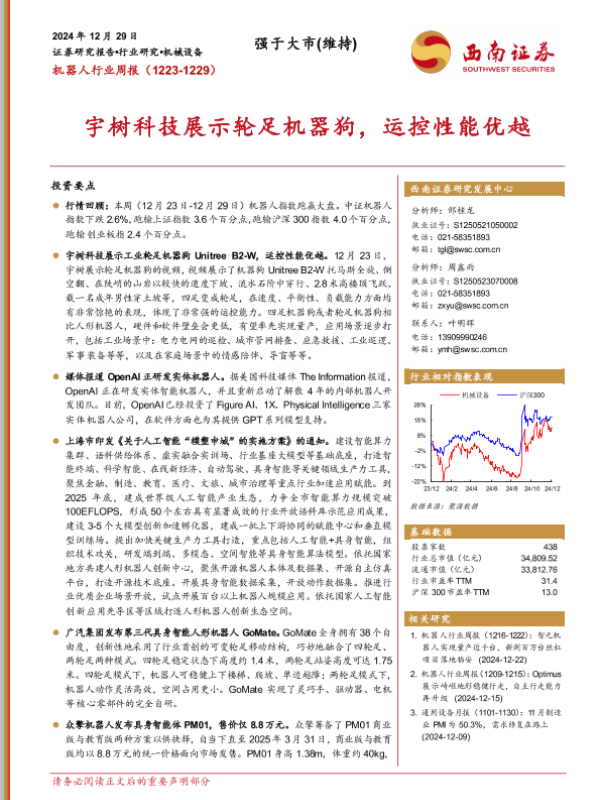 【西南证券】【20241229】20241229-西南证券-机器人行业周报:宇树科技展示轮足机器狗,运控性能优越-13页