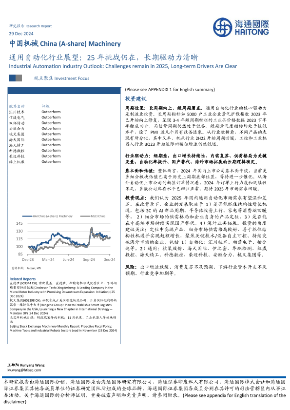 【海通国际】【20241229】通用自动化行业展望:25年挑战仍在,长期驱动力清晰-23页