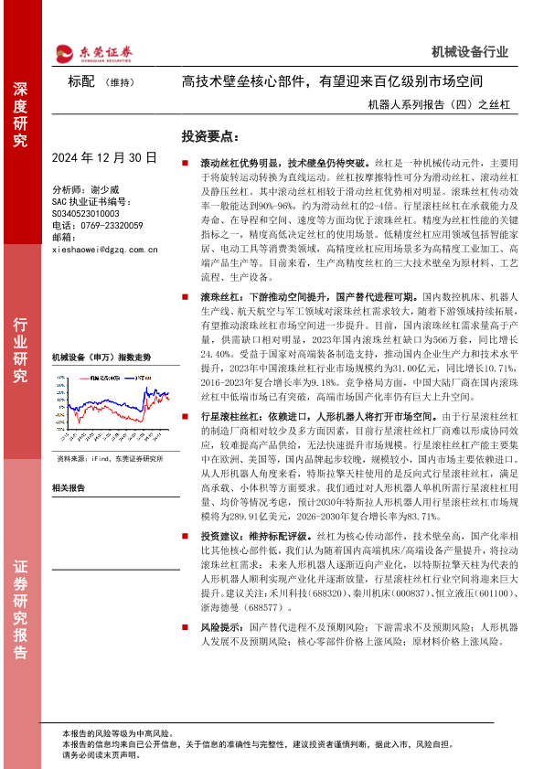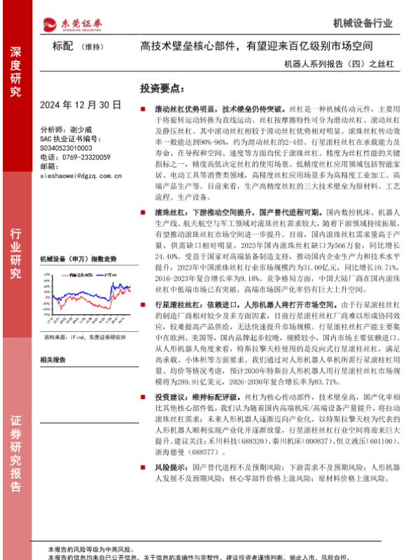 【东莞证券】【20241230】机器人系列报告(四)之丝杠:高技术壁垒核心部件,有望迎来百亿级别市场空间-15页