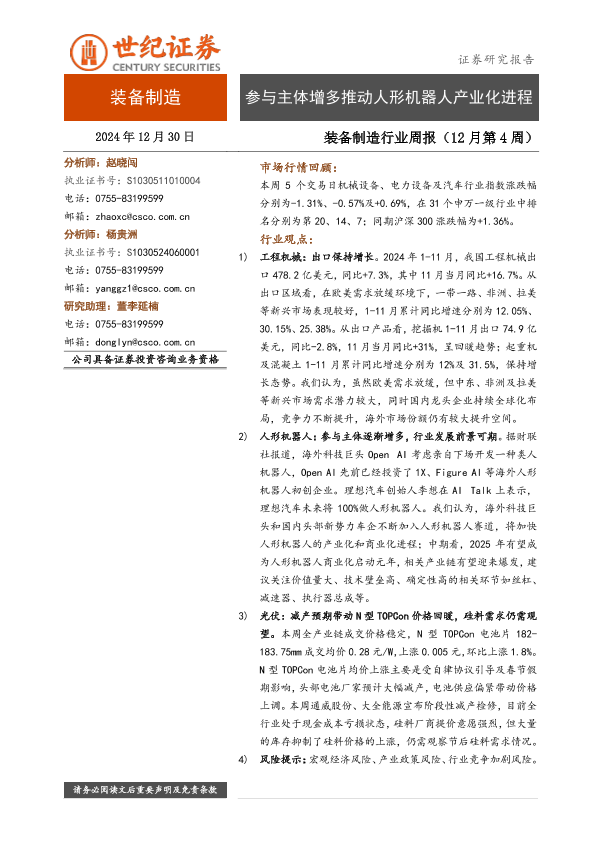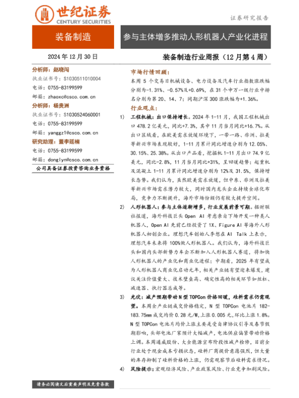 【世纪证券】【20241230】参与主体增多推动人形机器人产业化进程-10页
