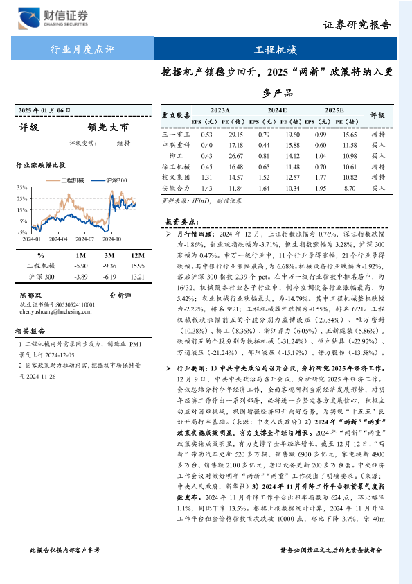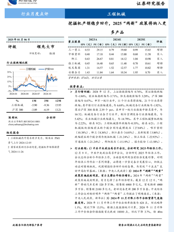 【财信证券】【20250106】20250106-财信证券-工程机械行业月度点评:挖掘机产销稳步回升,2025“两新”政策将纳入更多产品-14页