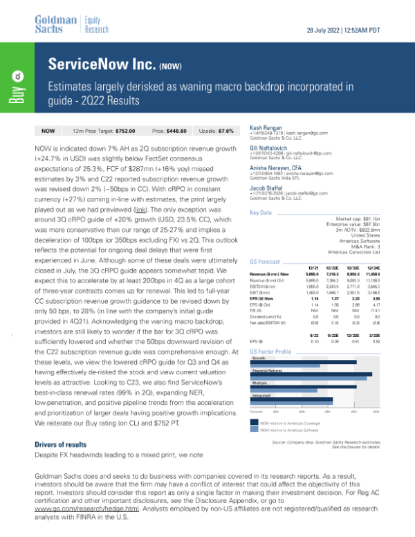 【Goldman Sachs】【20220728】ServiceNow 2Q22 Results - ly derisked as waning macro backdrop incorporated in guide-11页