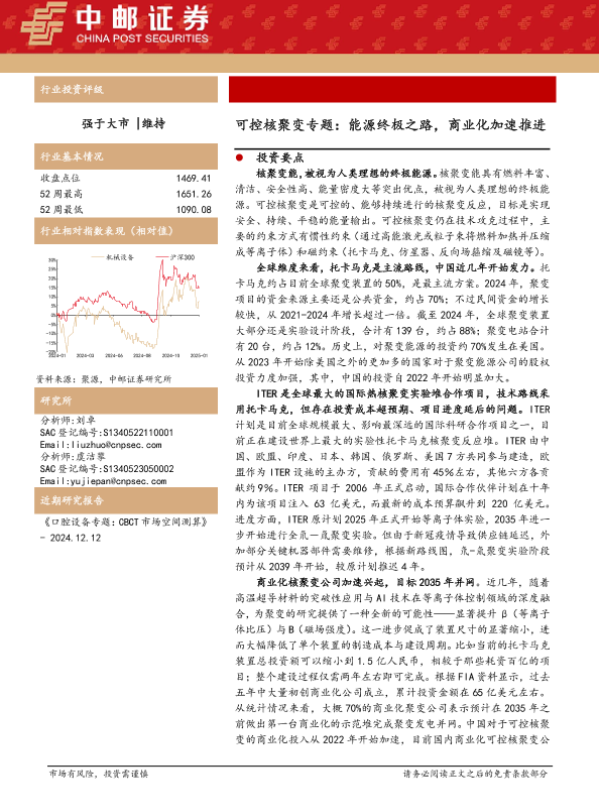 【中邮证券】【20250110】20250110-中邮证券-可控核聚变专题:能源终极之路,商业化加速推进-22页