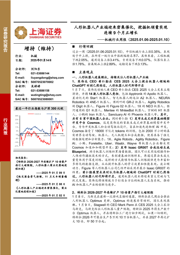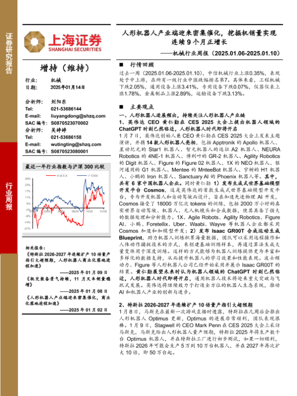 【上海证券】【20250114】20250114-上海证券-机械行业周报:人形机器人产业端迎来密集催化,挖掘机销量实现连续9个月正增长-17页