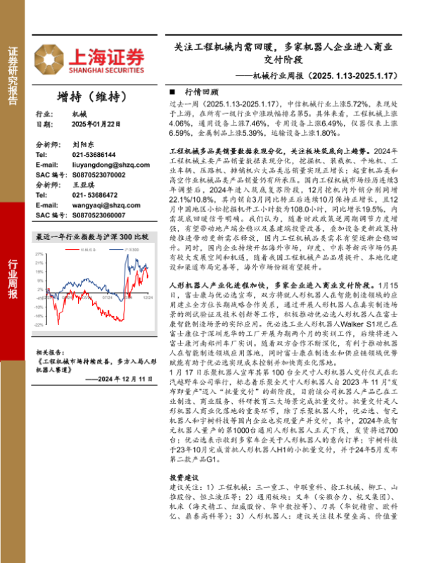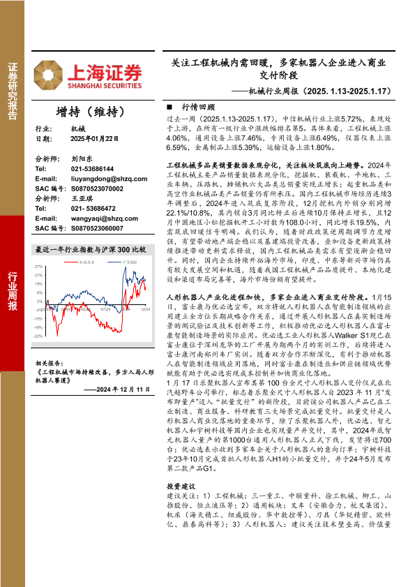 【上海证券】【20250122】20250122-上海证券-机械行业周报:关注工程机械内需回暖,多家机器人企业进入商业交付阶段-15页