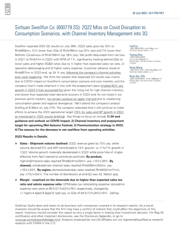 【Goldman Sachs】【20220726】Disruption to Consumption Scenarios, with Channel Inventory Management in 2Q22-9页