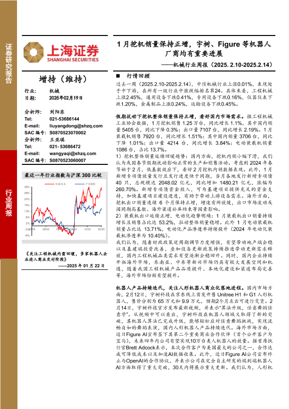 【上海证券】【20250219】20250219-上海证券-机械行业周报:1月挖机销量保持正增,宇树、Figure等机器人厂商均有重要进展-15页
