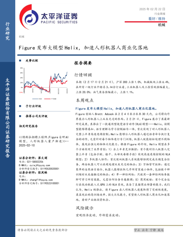 【太平洋证券】【20250222】20250222-太平洋-机械行业周报:Figure发布大模型Helix,加速人形机器人商业化落地-17页