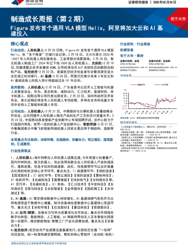【国信证券】【20250224】20250224-国信证券-机械设备行业制造成长周报(第2期):Figure发布首个通用VLA模型Helix,阿里将加大云和AI基建投入-11页