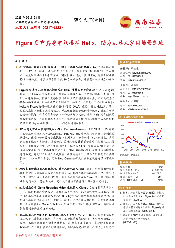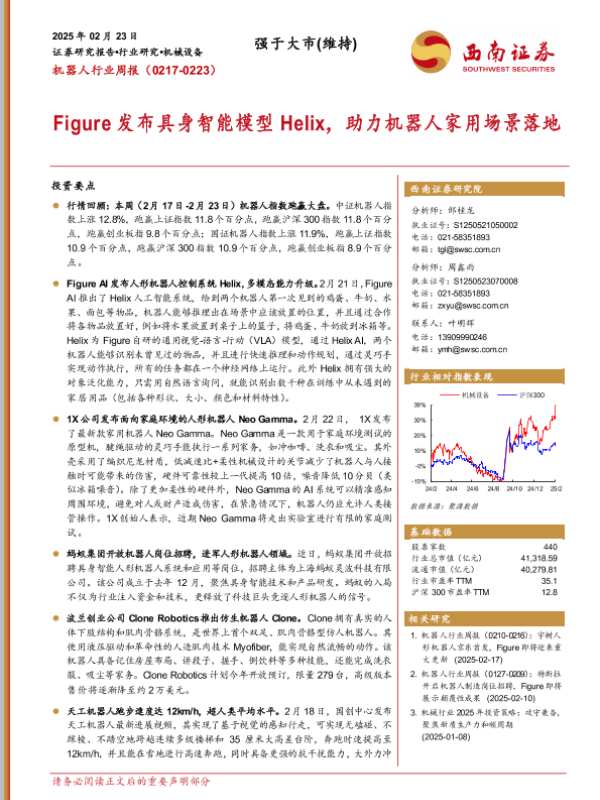 【西南证券】【20250223】20250223-西南证券-机器人行业周报:Figure发布具身智能模型Helix,助力机器人家用场景落地-12页
