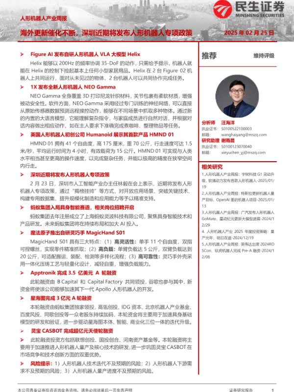 【民生证券】【20250225】人形机器人产业周报:海外更新催化不断,深圳近期将发布人形机器人专项政策-15页
