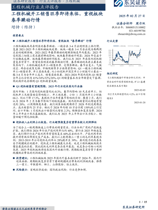 【东吴证券】【20250227】工程机械开工销售旺季即将来临,重视板块春季躁动行情-15页