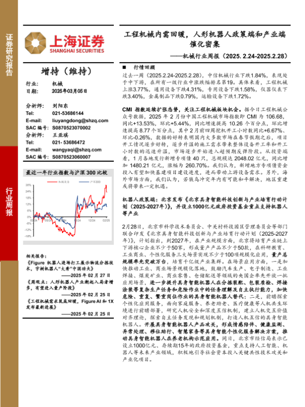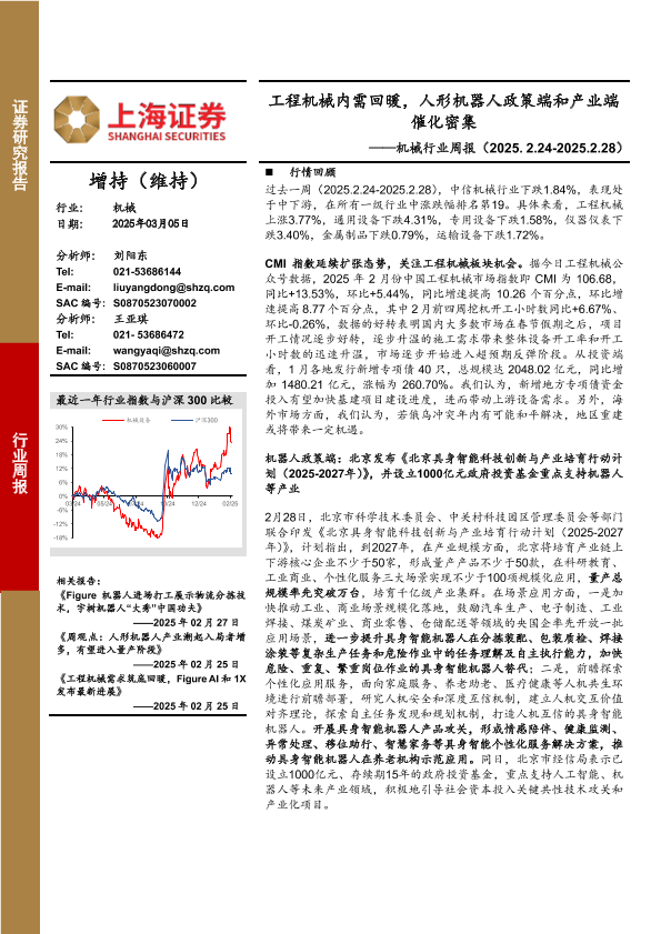 【上海证券】【20250305】20250305-上海证券-机械行业周报:工程机械内需回暖,人形机器人政策端和产业端催化密集-14页