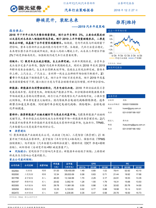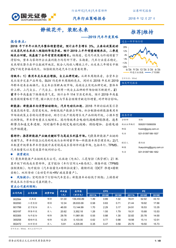 【国元证券】【20181227】2019汽车年度策略:静候花开,装配未来-49页