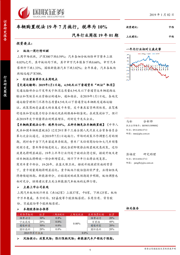 【国联证券】【20190102】20190102-国联证券-汽车行业周报19年01期:车辆购置税法19年7月施行,税率为10%-15页