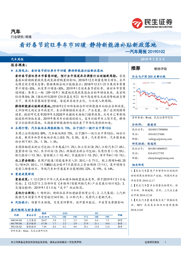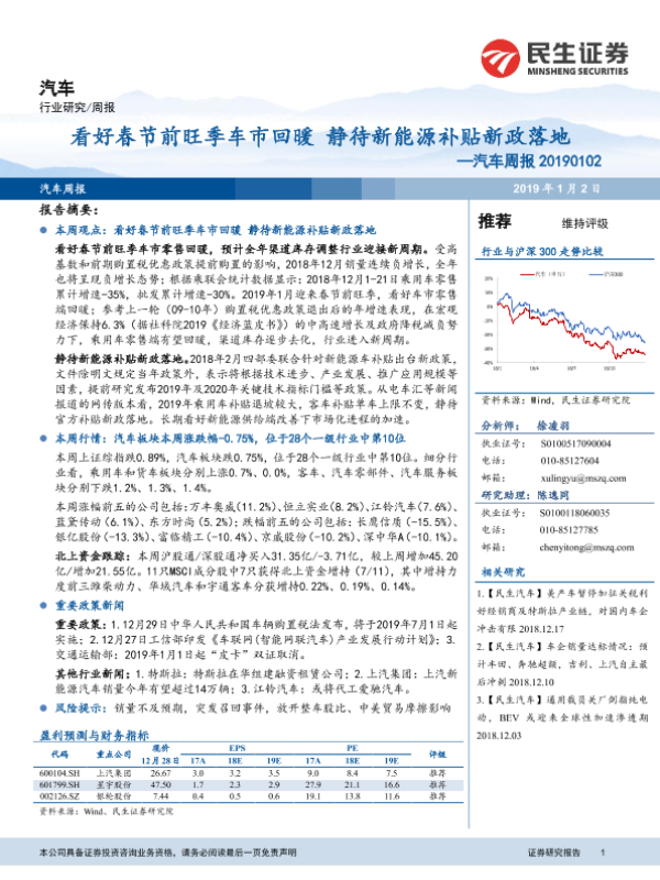 【民生证券】【20190102】20190102-民生证券-汽车行业周报:看好春节前旺季车市回暖静待新能源补贴新政落地-17页