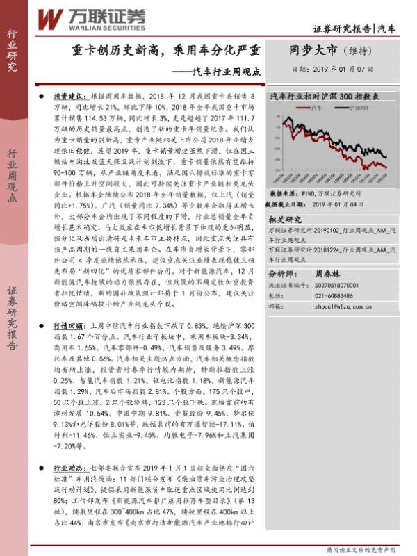 【万联证券】【20190107】20190107-万联证券-汽车行业周观点:重卡创历史新高,乘用车分化严重-13页