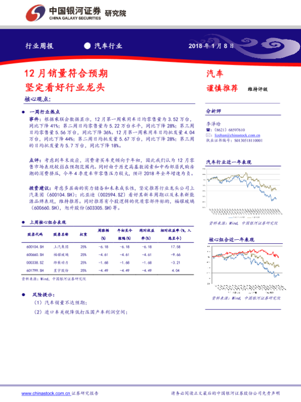 【银河证券】【20190108】20190108-中国银河-汽车行业周报:12月销量符合预期 坚定看好行业龙头-19页