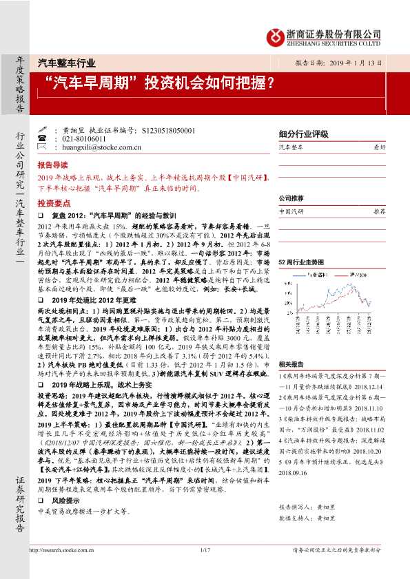 【浙商证券】【20190113】20190113-浙商证券-汽车整车行业年度策略报告:“汽车早周期”投资机会如何把握?-17页