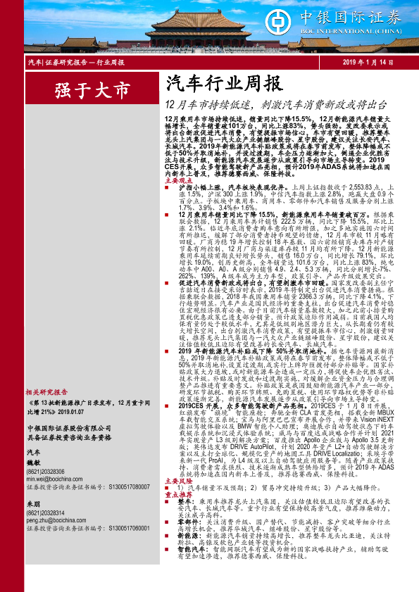 【中银证券】【20190114】12月车市持续低迷,刺激汽车消费新政或将出台-22页